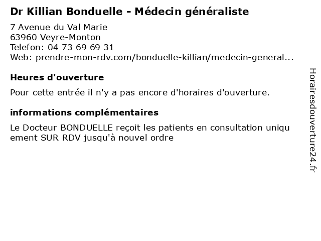 | Appeler Dr Killian Bonduelle - Médecin généraliste | |