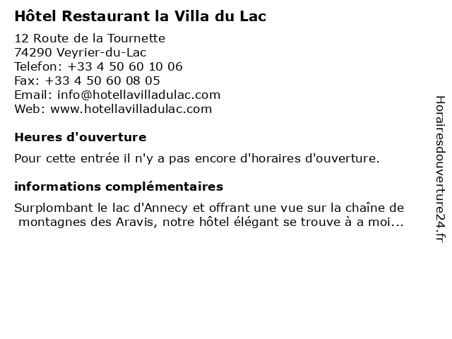 | Appeler Hôtel Restaurant la Villa du Lac | |