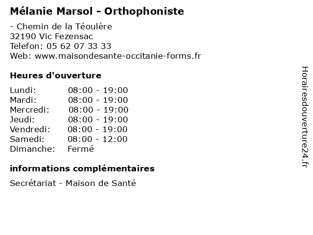 | Lundi | 08:00-19:00 |