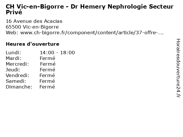 Termes de recherche pour CH Vic-en-Bigorre - Dr Hemery Nephrologie Secteur Privé:en, bureau, med, medecine, privé, maladie, vic, secteur, ch, traitement, bigorre, médecin, consultation, dr, pratique, hemery, therapie, néphrologie |