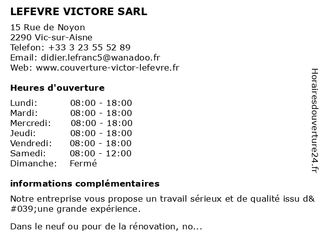 Termes de recherche pour LEFEVRE VICTORE SARL:sarl, lefevre, victore |