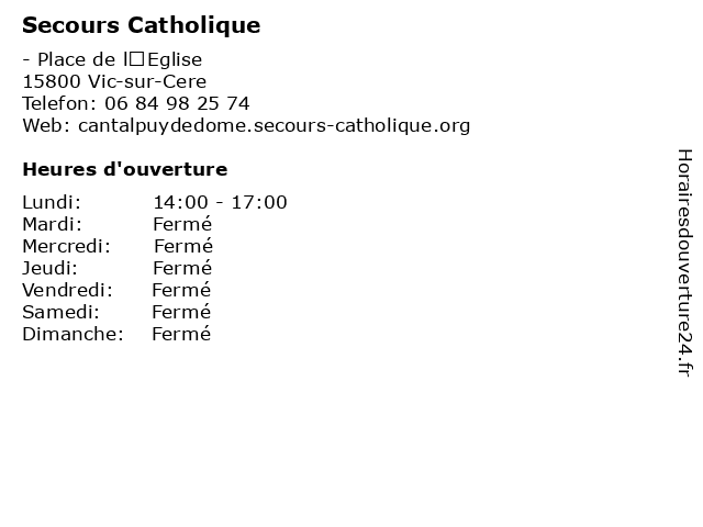 1 Secours Catholique (Distance: 15,44 km) 4 Rue de Versailles, 15000 Aurillac associatif, association, bénévolat, bénévole, catholique, secours, solidaire, solidarité 2 Secours Catholique - Boutique Solidaire (Distance: 0,00 km) - Place de l’Eglise, 15800 Vic-Sur-Cere associatif, association, boutique, bénévolat, bénévole, catholique, secours, solidaire, solidarité 3 Centre de secours Vic-sur-Cère - SDIS 15 (Distance: 0,25 km) - Rue du 14 juillet, 15800 Vic-sur-Cère 15, centre, cère, de, lutte contre les incendies, pompier, protection, prévention, sdis, secours, sur, vic 4 Centre de secours Saint-Martin-Valmeroux - SDIS 15 (Distance: 13,86 km) - Le Bourg, 15140 Saint-Martin-Valmeroux 15, centre, de, lutte contre les incendies, martin, pompier, protection, prévention, saint, sdis, secours, valmeroux 5 Le Secours populaire Francais - Fédération du Cantal (Distance: 16,00 km) 14 Rue Meallet de Cours, 15000 Aurillac accompagnement, aide, benevolat, cantal, du, francais, fédération, le, pauvrete, populaire, secours 6 Centre de secours Saint-Cernin - SDIS 15 (Distance: 17,94 km) - Le Bourg, 15310 Saint-Cernin 15, centre, cernin, de, lutte contre les incendies, pompier, protection, prévention, saint, sdis, secours |