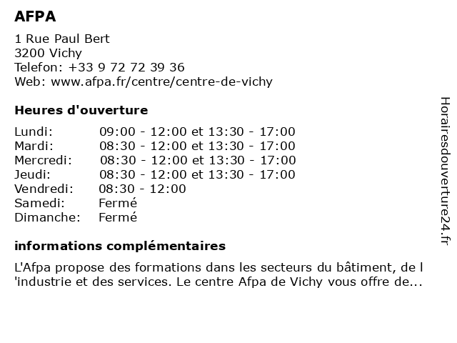 5 Afpa (Distance: 49,54 km) 16 rue Vercingetorix, 63110 Beaumont afpa, agence, entreprise, partenaire, services 6 |
