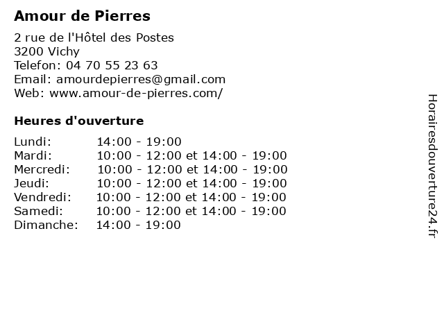 | Samedi | 10:00-12:00 et 14:00-19:00 |