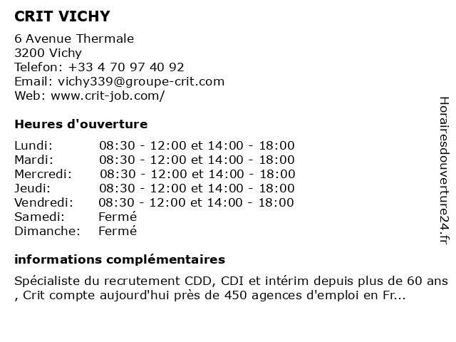 Termes de recherche pour CRIT VICHY:vichy, crit |
