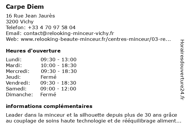 1 Carpvip (Distance: 40,57 km) 2 Rue Pierre et Marie Curie, 63360 Gerzat accessoires, boutique, carpe, carpvip, matériel, pêche, vente, équipement 2 Carpe Diem (Distance: 48,05 km) 11 Boulevard Saint-Exupéry, 03400 Yzeure carpe, diem, livraison, pizzas, restaurant, traditionnel |