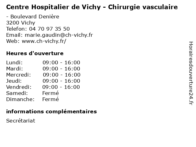 1 Centre Hospitalier de Vichy - Gynécologie obstétrique (Distance: 0,00 km) - Boulevard Denière, 03200 Vichy centre, consultation, de, docteur, gynécologie, hospitalier, med, médecin, médecine, obstétrique, traitement, vichy 2 Centre Hospitalier de Vichy - Urologie (Distance: 0,00 km) - Boulevard Denière, 03200 Vichy centre, consultation, de, docteur, hospitalier, med, médecin, médecine, traitement, urologie, vichy 3 Centre Hospitalier de Vichy - Chirurgie ORL (Distance: 0,00 km) - Boulevard Denière, 03200 Vichy centre, chirurgie, consultation, de, docteur, hospitalier, med, médecin, médecine, orl, traitement, vichy 4 Centre Hospitalier de Vichy - Chirurgie maxillo-faciale (Distance: 0,00 km) - Boulevard Denière, 03200 Vichy centre, chirurgie, consultation, de, docteur, faciale, hospitalier, maxillo, med, médecin, médecine, traitement, vichy 5 Centre Hospitalier de Vichy - Anesthésie (Distance: 0,00 km) - Boulevard Denière, 03200 Vichy anesthésie, centre, consultation, de, docteur, hospitalier, med, médecin, médecine, traitement, vichy 6 Centre Hospitalier de Vichy - Unité d'Hospitalisation Ambulatoire (Distance: 0,00 km) - Boulevard Denière, 03200 Vichy ambulatoire, centre, consultation, d'hospitalisation, de, docteur, hospitalier, med, médecin, médecine, traitement, unité, vichy |