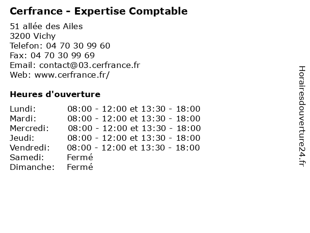 | Mercredi | 08:00-12:00 et 13:30-18:00 |
