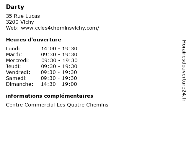 5 DARTY Clermont-Ferrand (Distance: 46,08 km) Rue de l'Hermitage, 63000 Clermont-Ferrand clermont, darty, ferrand 6 Darty cuisine Clermont-Ferrand (Distance: 46,09 km) Rue de l'Hermitage, 63000 Clermont-Ferrand clermont, cuisine, darty, ferrand |