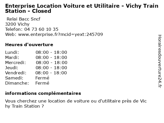 Termes de recherche pour Enterprise Location Voiture et Utilitaire - Vichy Train Station - Closed:et, vichy, station, location, voiture, enterprise, train, utilitaire, closed |