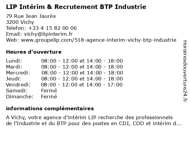 1 Adéquat - Intérim et Recrutement (Distance: 0,60 km) 17 Rue des Bartins, 03200 Vichy adéquat, emploi, et, intérim, recrutement 2 Agence d'intérim Randstad - Vichy (Distance: 0,64 km) 37 Avenue de Gramont, 03200 Vichy agence, agence intérim, agence pour l'emploi, conseils en recrutement, d'intérim, guide des salaires, offres d'emploi, randstad, recrutement intérim, vichy 4 OPTINERIS agence d'intérim - Vichy (Distance: 1,42 km) 14Bis Rue de Romainville, 03300 Cusset agence, d'intérim, optineris, vichy 6 Agence d'Intérim Manpower Vichy (Distance: 2,45 km) 51 Avenue du Général de Gaulle, 03700 Bellerive-sur-Allier agence, agence de recrutement, agence intérim, agence pour l'emploi, cabinet de recrutement, cdi, d'intérim, intérim, manpower, recrutement, vichy |
