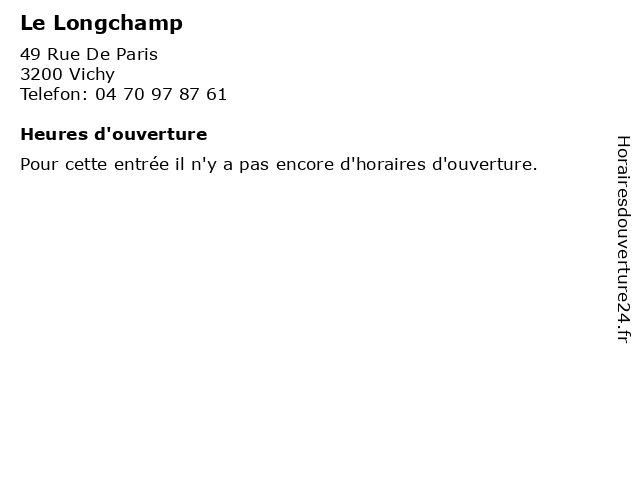 1 Longchamp (Distance: 47,10 km) 25 Place de Jaude, 63000 Clermont-Ferrand boutique, collections, longchamp, mode, prêt à porter, sac |