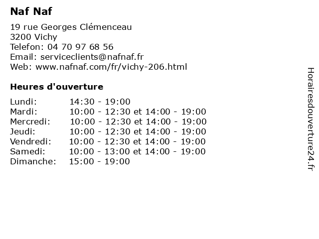 | Mercredi | 10:00-12:30 et 14:00-19:00 |