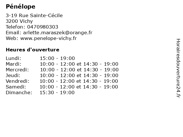 | Jeudi | 10:00-12:00 et 14:30-19:00 |