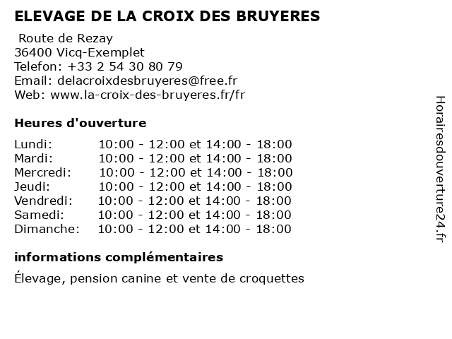 | Samedi | 10:00-12:00 et 14:00-18:00 |