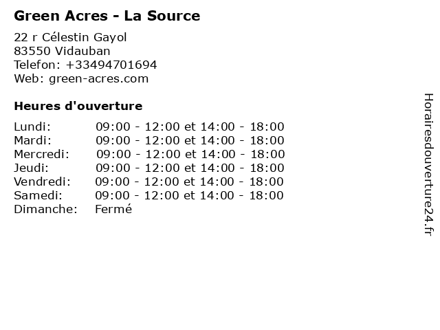 | Lundi | 09:00-12:00 et 14:00-18:00 |
