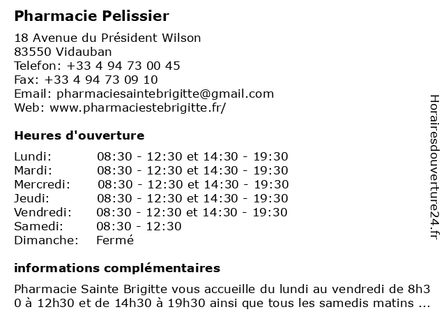 | Mercredi | 08:30-12:30 et 14:30-19:30 |