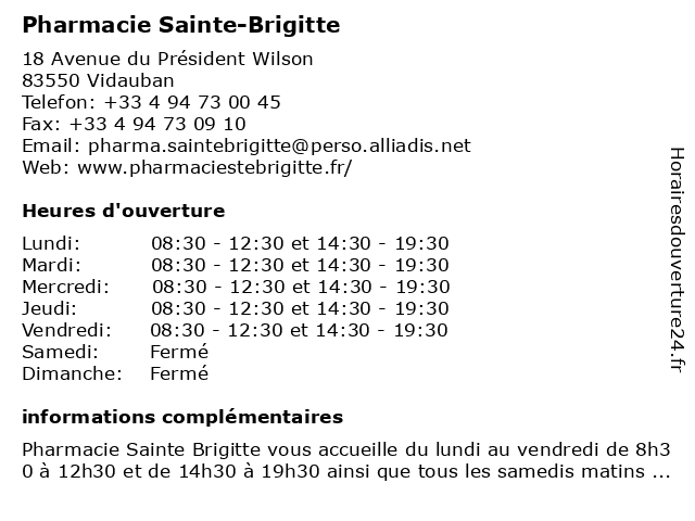 | Mercredi | 08:30-12:30 et 14:30-19:30 |