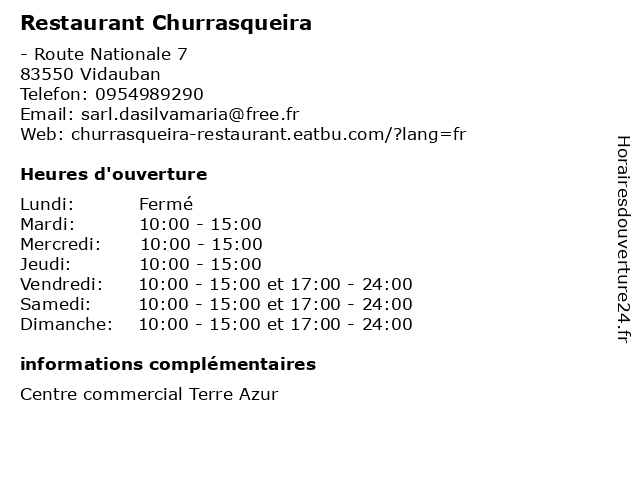 | Dimanche | 10:00-15:00 et 17:00-24:00 |