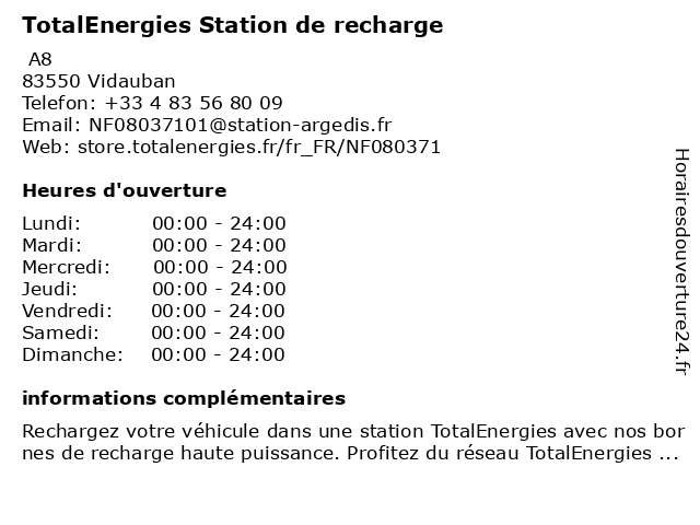1 TotalEnergies Station de recharge (Distance: 0,07 km) A8, 83480 Puget-sur-Argens borne de recharge, borne de recharge autoroute, borne de recharge rapide, ccs, chademo, charge haute puissance, charge+, charging station, de, ev, high power charge, ma charge rapide, mobility, recharge, recharger ma voiture, recharger voiture, station, station autouroute, station de recharge, station-service, supercharger, tankstelle, total, totalaccess, totalenergie, totalenergies 2 TotalEnergies Station de recharge (Distance: 12,43 km) A8 Aix En Provence Italie, 83600 Fréjus borne de recharge, borne de recharge autoroute, borne de recharge rapide, ccs, chademo, charge haute puissance, charge+, charging station, de, ev, high power charge, ma charge rapide, mobility, recharge, recharger ma voiture, recharger voiture, station, station autouroute, station de recharge, station-service, supercharger, tankstelle, total, totalaccess, totalenergie, totalenergies 3 TotalEnergies - REL.CANAVER (Distance: 0,03 km) A8 - AIRE DE CANAVER, 83480 PUGET SUR ARGENS rel.canaver, station autoroute, totalenergies 4 TotalEnergies - GARAGE DE LA GARONNE (Distance: 3,32 km) 3500 ROUTE DEPARTEMENTALE 7, 83520 ROQUEBRUNE SUR ARGENS de, garage, garonne, gas station, la, station service, tankstelle, total, totalenergies 5 TotalEnergies - RELAIS PTE DES GAULES (Distance: 5,52 km) 100 RDN7 AV. DE VERDUN, 83600 FREJUS des, gas station, gaules, pte, relais, station service, tankstelle, total, totalenergies 6 TotalEnergies - RELAIS CORNICHE D'AZUR (Distance: 8,24 km) Avenue André Léotard, 83600 Fréjus corniche, d'azur, gas station, relais, station service, tankstelle, total, totalenergies |