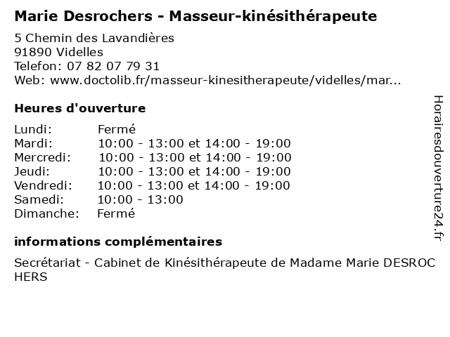 | Mercredi | 10:00-13:00 et 14:00-19:00 |
