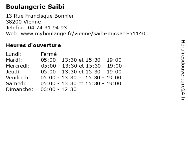 | Lundi | Fermé |