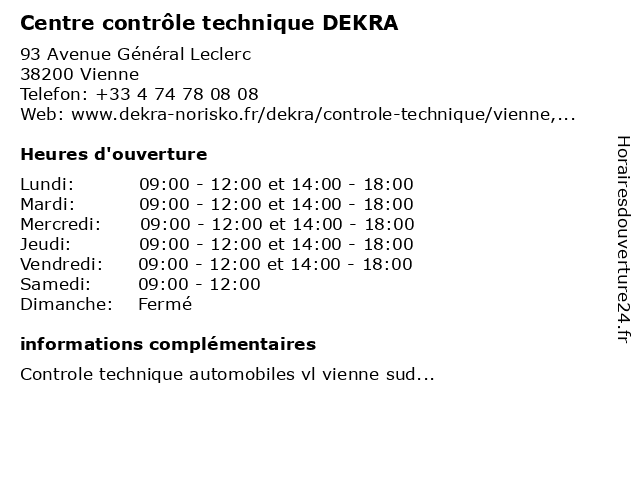 Description de l'entreprise :Préparer votre contrôle techniquePour préparer votre contrôle technique dans notre centre DEKRA de Vienne, vous pouvez vérifier en amont différents points comme les pneumatiques, la visibilité, le niveau d'huile ou encore l'habitacle. Pour tout savoir, consultez notre vidéo. Voir l'offre |