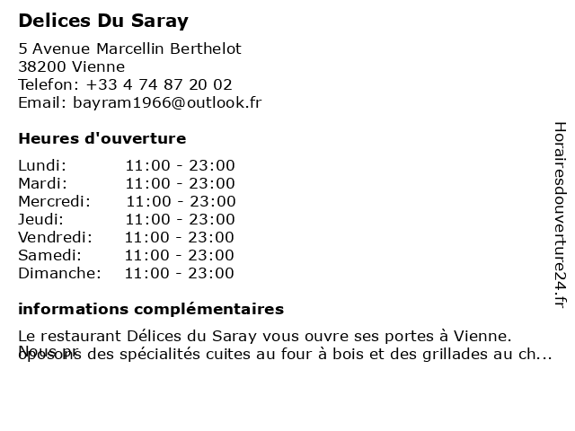 | Samedi | 11:00-23:00 |
