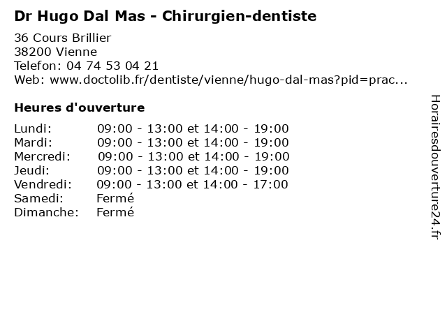 | Lundi | 09:00-13:00 et 14:00-19:00 |