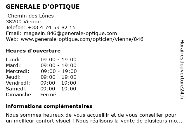 2 Concept Optique (Distance: 2,44 km) 89 rue Marchande, 38200 Vienne concept, entretien, lentilles, lunettes, opticien, optique, solaire, vue 3 Écouter Voir Optique VIENNE (Distance: 2,60 km) 31 Cours Marc-Antoine Brillier, 38200 Vienne optique, vienne, voir, écouter 6 Optique Just' Un Regard (Distance: 6,82 km) 32 Boulevard des Allées, 69420 Ampuis just', lentilles, lunettes, opticien, optique, regard, solaire, un, vues |