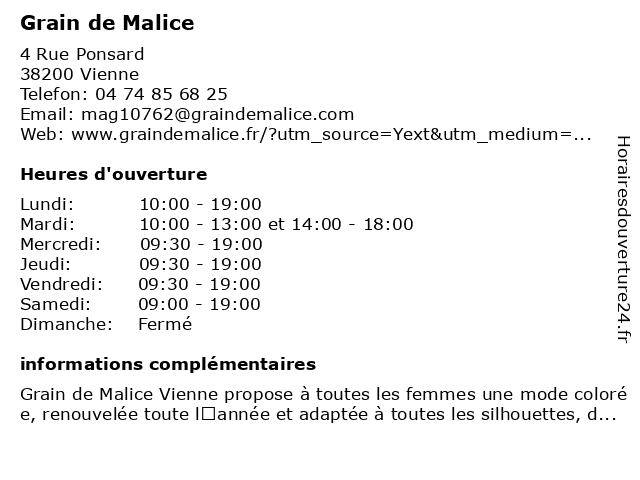 | Mercredi | 09:30-19:00 |