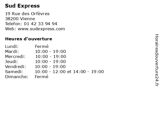 | Samedi | 10:00-12:00 et 14:00-19:00 |