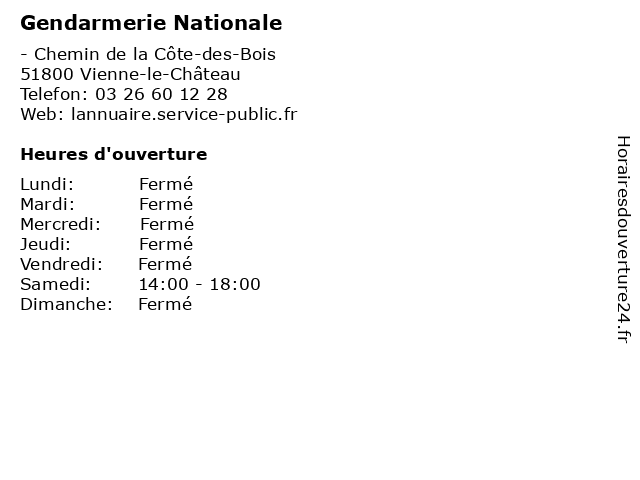 1 Gendarmerie Nationale (Distance: 11,43 km) 8 Rue Drouet, 51800 Sainte-Menehould brigade, commandant, communauté, gendarme, gendarmerie, nationale, proximité, sécurité 2 Gendarmerie Nationale (Distance: 16,27 km) - Rue Montflix, 08250 Grandpré brigade, commandant, communauté, gendarme, gendarmerie, nationale, proximité, sécurité 3 Gendarmerie Nationale (Distance: 16,93 km) 3 Boulevard du Général Laure, 55120 Clermont-en-Argonne brigade, commandant, communauté, gendarme, gendarmerie, nationale, proximité, sécurité 4 Gendarmerie Nationale (Distance: 18,25 km) 1 Rue Principale, 08400 Monthois brigade, commandant, communauté, gendarme, gendarmerie, nationale, proximité, sécurité 5 Gendarmerie Nationale - Peloton motorisé (Distance: 13,38 km) - Route d'Argers, 51800 Sainte-Menehould brigade, communauté, gendarme, gendarmerie, motorisé, nationale, peloton, proximité, sécurité 6 Gendarmerie Nationale (Distance: 26,63 km) - Avenue du Général Leclerc, 51600 Suippes brigade, commandant, communauté, gendarme, gendarmerie, nationale, proximité, sécurité |