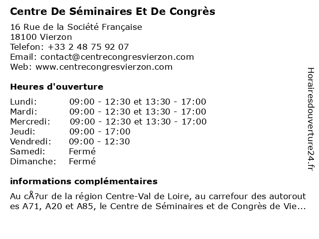 | Lundi | 09:00-12:30 et 13:30-17:00 |