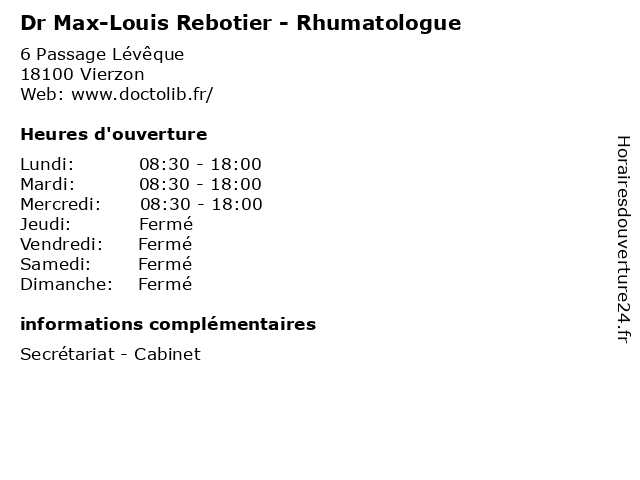 | Mercredi | 08:30-18:00 |