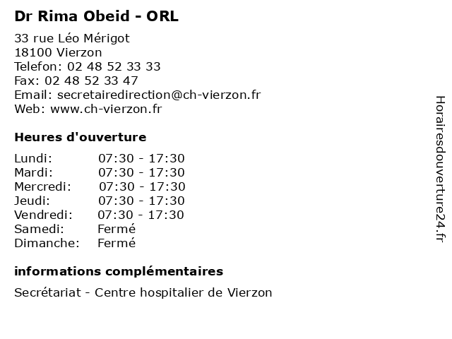 1 Dr Moujtaba El Atassi - ORL (Distance: 0,00 km) 33 rue Léo Mérigot, 18100 Vierzon atassi, consultation, docteur, dr, el, med, moujtaba, médecin, médecine, orl, traitement 2 Dr Rabah Bouhadef - Médecin ORL (Distance: 30,25 km) - Avenue Jean Bonnefont, 36105 Issoudun blanche, bouhadef, centre, de, dr, hospitalier, issoudun, la, laryngologie, médecin, orl, oto, rabah, rhino, tour 3 Dr Emmanuelle Guillemain- ORL - Chirurgien de la face et du cou (Distance: 33,18 km) 145 avenue François Mitterrand, 18020 Bourges chirurgien, consultation, cou, de, docteur, dr, du, emmanuelle, et, face, guillemain, la, med, médecin, médecine, orl, traitement 4 Dr. Frédéric Heurtebise - ORL - Chirurgien de la face et du cou (Distance: 33,18 km) 145 avenue François Mitterrand, 18020 Bourges chirurgien, consultation, cou, de, docteur, dr., du, et, face, frederic, frédéric, heurtebise, la, med, médecin, médecine, orl, traitement 5 Dr Moussab Alrajeh - Médecin ORL (Distance: 54,81 km) 216 Avenue de Verdun, 36000 Châteauroux alrajeh, ch, châteauroux, de, dr, laryngologie, moussab, médecin, orl, oto, rhino, site 6 Dr François Bories - Médecin ORL (Distance: 54,81 km) 216 Avenue de Verdun, 36000 Châteauroux bories, ch, châteauroux, de, dr, françois, laryngologie, médecin, orl, oto, rhino, site |