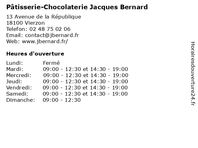| Samedi | 09:00-12:30 et 14:30-19:00 |