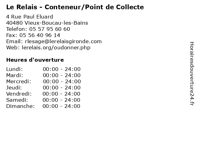 Termes de recherche pour Le Relais - Conteneur/Point de Collecte:relais, le, de, vêtements, point, collecte, dons, conteneur/point |