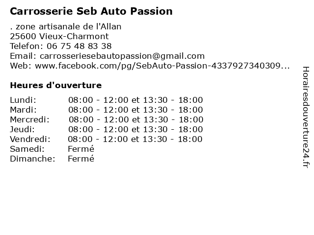| Lundi | 08:00-12:00 et 13:30-18:00 |