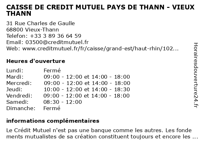 Termes de recherche pour CAISSE DE CREDIT MUTUEL PAYS DE THANN - VIEUX THANN:de, vieux, thann, crédit, mutuel, caisse, pays |