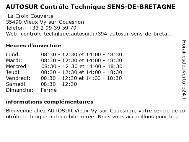 | Samedi | 08:30-12:30 |
