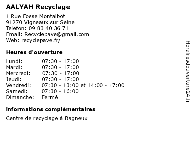 | Vendredi | 07:30-13:00 et 14:00-17:00 |
