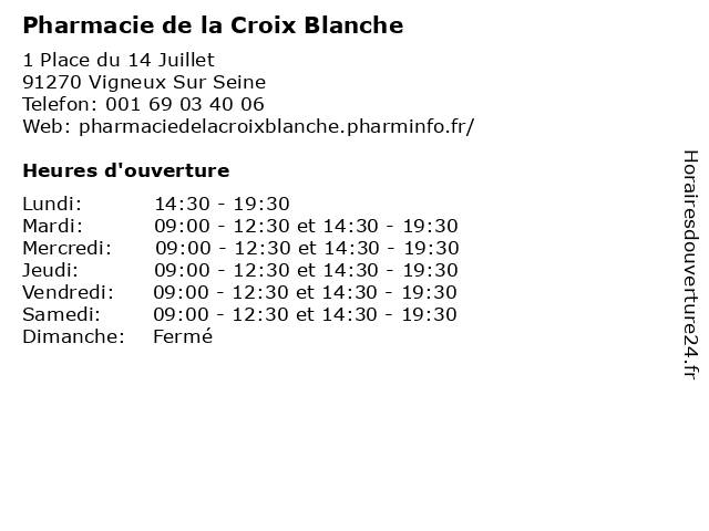 | Samedi | 09:00-12:30 et 14:30-19:30 |
