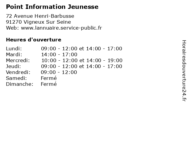1 Point Information Jeunesse (Distance: 0,00 km) 72 avenue Henri-Barbusse, 91270 Vigneux-sur-Seine administration, assoc, bressuire, bureau, information, jeunesse, point, seine, services, services publics, sur, vigneux 2 Point Information Jeunesse (Distance: 1,77 km) 8 Rue Henri Dunant, 91210 Draveil administration, assoc, information, jeunesse, point, services, services publics 3 Point Information Jeunesse (Distance: 7,45 km) . Victor-Hugo, 91860 Epinal administration, assoc, information, jeunesse, point, services, services publics 4 Point Information Jeunesse (Distance: 8,44 km) . Hall de la Gare, 91004 Evry administration, assoc, information, jeunesse, point, services, services publics 5 Point Information Jeunesse (Distance: 8,61 km) . Esplanade des Droits-de-l'Homme, 91350 Grigny administration, assoc, information, jeunesse, point, services, services publics 6 Point Information Jeunesse (Distance: 11,74 km) 49-51 Rue Marcel-Bourdarias, 94140 Alfortville administration, assoc, information, jeunesse, point, services, services publics |