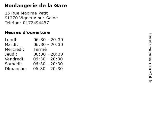 | Samedi | 06:30-20:30 |