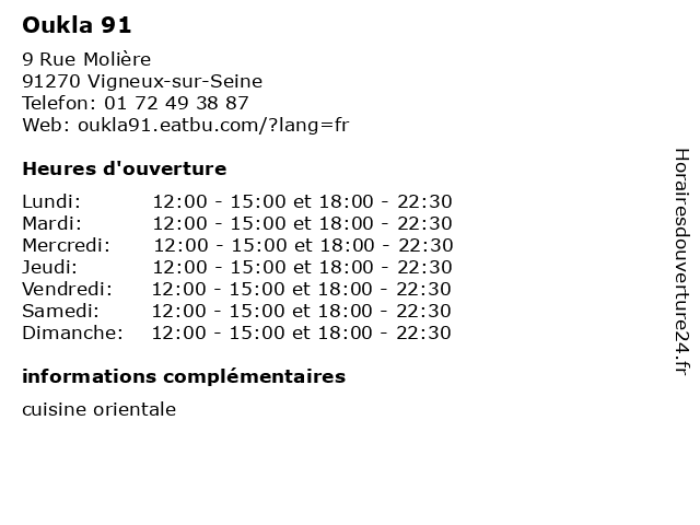 | Lundi | 12:00-15:00 et 18:00-22:30 |