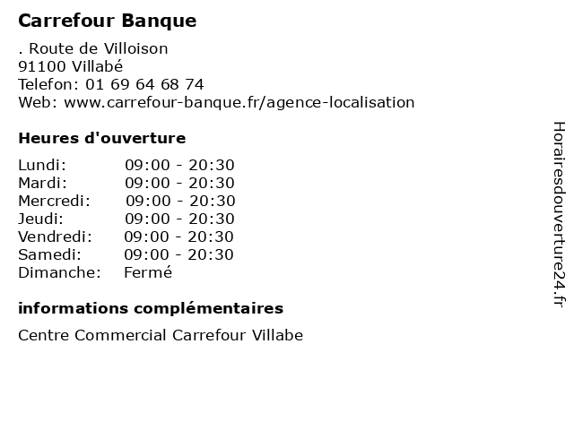1 Carrefour Banque (Distance: 0,00 km) . Route de Villoison, 91814 Corbeil banque, beaute, cafe, carrefour, chaussures, enfants, hommes, lingerie, mode femmes, restaurant, sport 2 Carrefour Banque (Distance: 5,36 km) - Boulevard De L'europe, 91000 Évry-Courcouronnes assurances, banque, carrefour, services 3 Carrefour Banque (Distance: 8,19 km) - Allée du Préambule, 77127 Lieusaint agence, assurance, assurances, bancaire, banque, banquier, carrefour, finance, prêts 4 Carrefour Banque (Distance: 10,11 km) 139 Route de Corbeil, 91700 Sainte-Geneviève-des-Bois assurances, banque, carrefour, services 5 Carrefour Banque (Distance: 14,53 km) 20 Route Nationale, 91620 La Ville Du Bois banque, cafe, carrefour, chaussures, enfants, homme, mode femme, restaurant, service 6 Carrefour Banque (Distance: 14,67 km) - Route Nationale 7, 77190 Villiers-en-Bière banque, carrefour, crédit, financement, épargne |