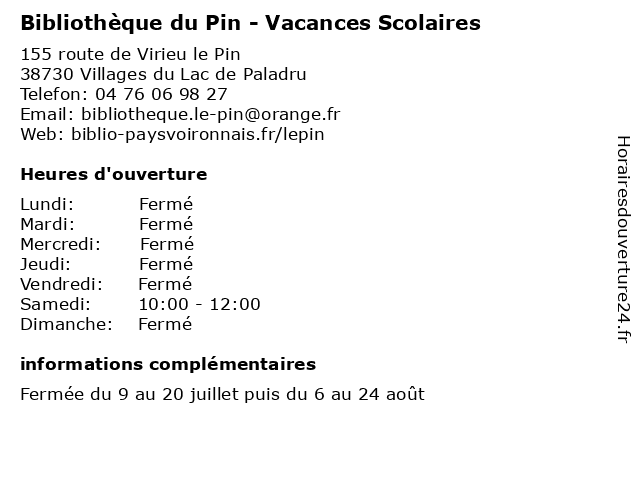 Termes de recherche pour Bibliothèque du Pin - Vacances Scolaires:du, pin, vacances, bibliotheque, scolaires, jeunesse, horaire, comics, bandes dessinées, littérature générale |