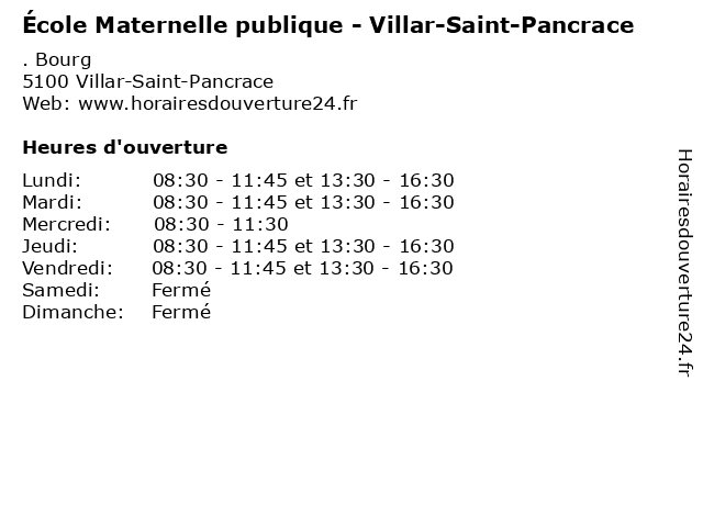 | Mardi | 08:30-11:45 et 13:30-16:30 |