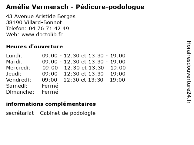 | Mercredi | 09:00-12:30 et 13:30-19:00 |